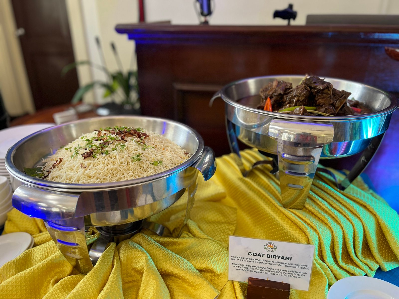 Fragrant long-grain basmati rice layered with tender goat meat, saffron, and rich spices, cooked using the traditional “dum” (slow steam) method. Biryani dates back to the Mughal Empire and spread across South Asia and the Middle East. The goat version is highly cherished in Muslim communities during festive occasions such as Eid celebrations.