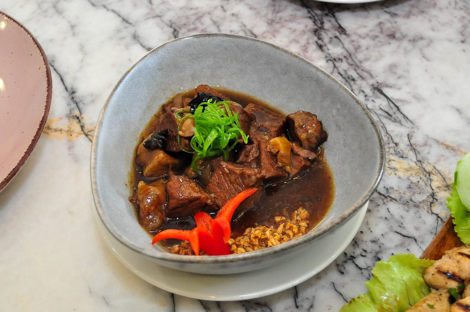 And then there’s the food. Dining at Mezzo used to be a complement to the stay. Now, it’s part of the story. Our meal was curated by Executive Chef Berkely Ng himself, a select collection of dishes that reflected both confidence and restraint. Café Mezzo’s new elevated menu is a thoughtful blend of flavors that span familiar and inventive. We started with the Fish Soup in Spicy Lemongrass—clean, warming, and subtly bold—and the Vegetable Miso Soup, a quiet comfort. The Grilled Chicken with Peanut Sauce was delicate, while the Sizzling Gambas brought just enough heat to wake up the palate. Mezzo’s signature take on the classic Pinoy beef pares—the Urban Beef Pares—delivered rich, flavorful broth and tender meat, yet remained surprisingly light and comforting. Meanwhile, the Crispy Pork Kare-Kare brought familiar flavors with a more refined edge. For something more continental, the Beef Stroganoff Bliss delivered creamy, unfussy warmth and ultimately became my personal favorite. The Banh Mi had just the right contrast of crunch and spice. We ended with three desserts that didn’t overdo it—a crowd-pleaser and a must-try, the Avo Crème Deluxe, the playful Coffee Jelly Bomb, and a comforting Brownie à la Mode. With prices between ₱160 and ₱420, the dining here is accessible, intentional, and satisfying without trying to impress for the sake of it.